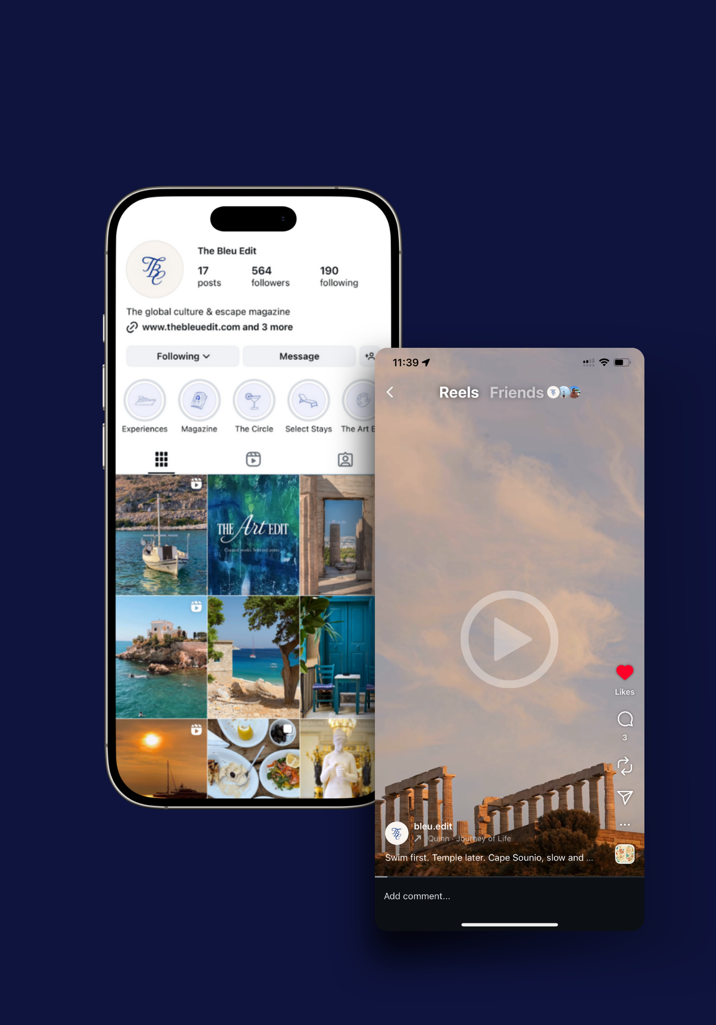 Direction, videography, and content production for The Bleu Edit’s Instagram presence, extending the journal’s aesthetic into short-form video and photography. Built a cinematic, editorial feed designed to engage audiences and drive traffic to the website.